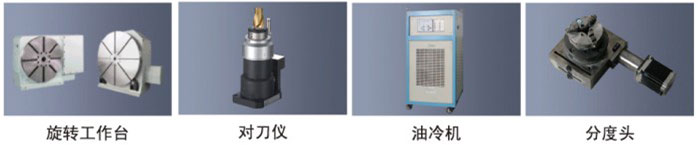 全系皆可選配西班牙發格系統、BT30系列氣動換刀電主軸、自動對刀儀、第四周(數控分度頭)、輔助工作臺及刀庫等。